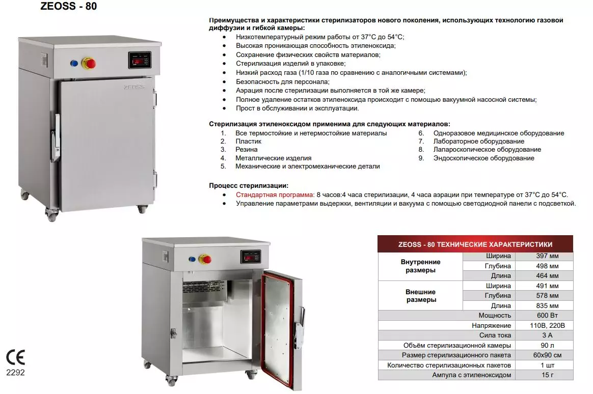 - Низкотемпературный режим работы +37+54°C, а значит можно использовать для большинства медицинских изделий.