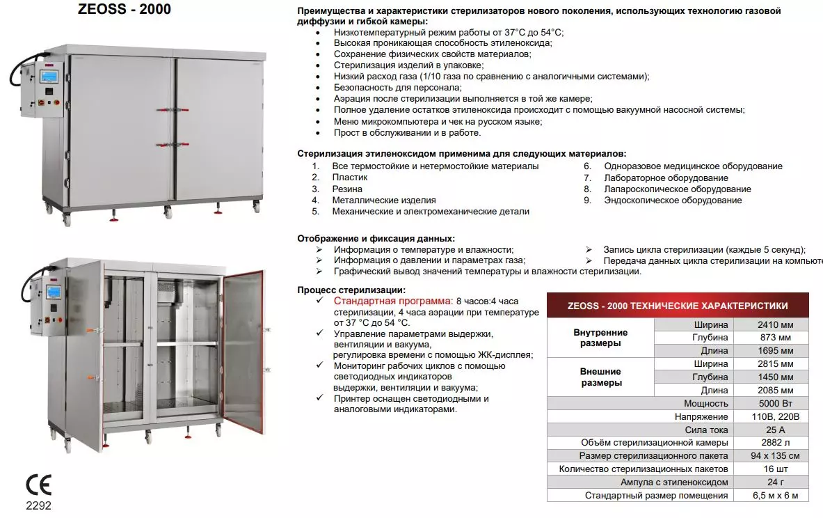 - Низкотемпературный режим работы +37+54°C, а значит можно использовать для большинства медицинских изделий.
