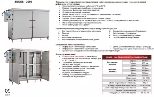 - Работает при отрицательном давлении. Молекулы газа, выходящие из стерилизационного пакета, мгновенно попадают в выхлопную трубу, что исключает возникновение опасных концентраций внутри камеры.