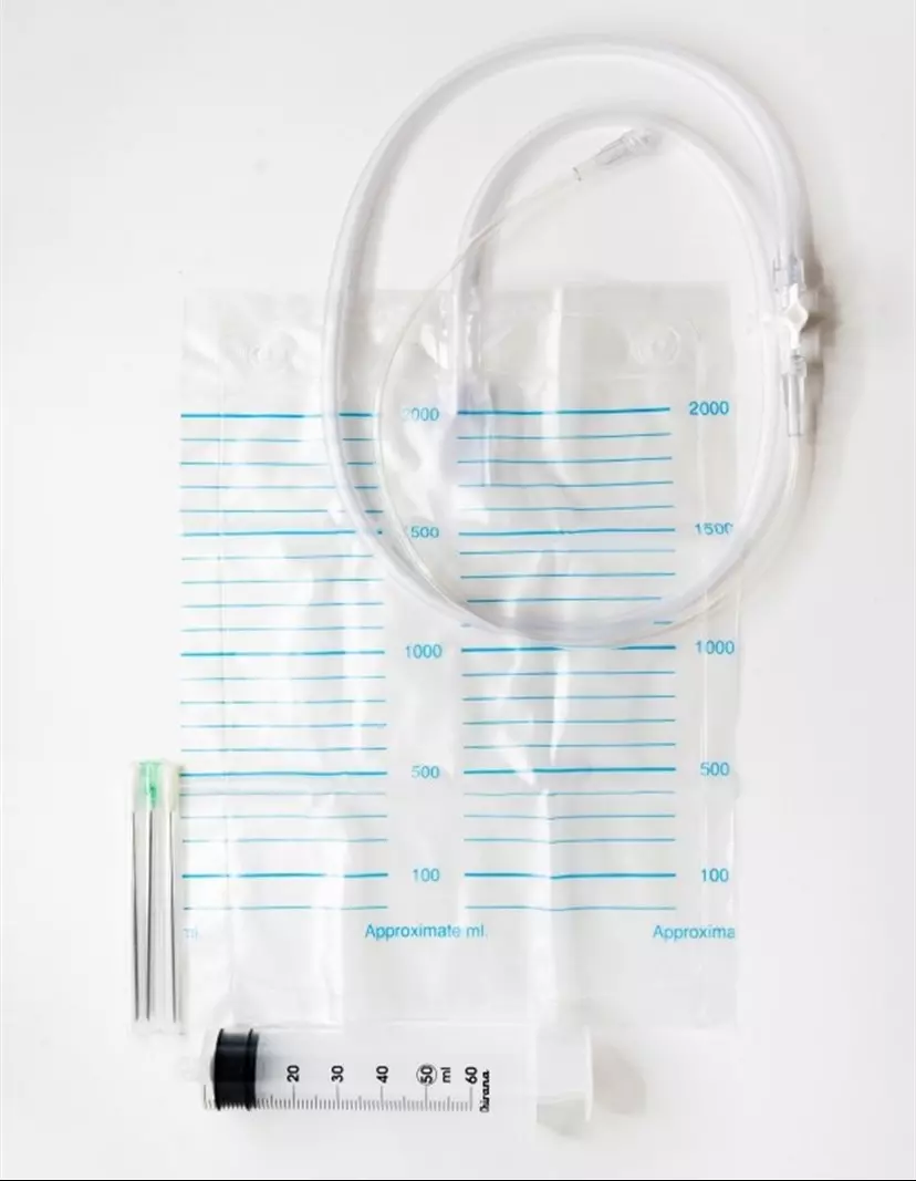 • Дренажный мешок объемом 2000 мл, на поверхность которого нанесена шкала с шагом 100 мл. Снабжен невозвратным клапаном.