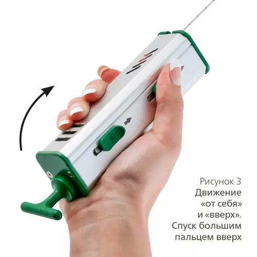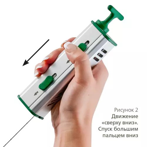 - при позиционировании иглы в теле пациента врач должен принимать во внимание, что при выстреле игла и мандрен сдвинутся примерно на 2 сантиметра вперёд
