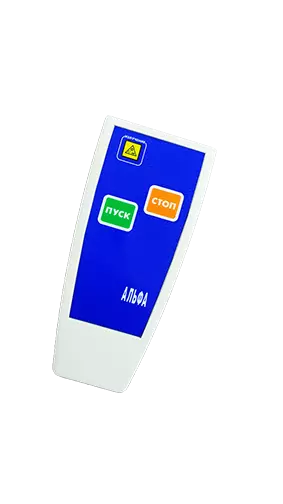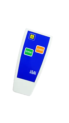 - Пульт дистанционного управления, работающий по радиоканалу и предназначенный для включения и экстренного выключения установки оператором вне обрабатываемого помещения.
