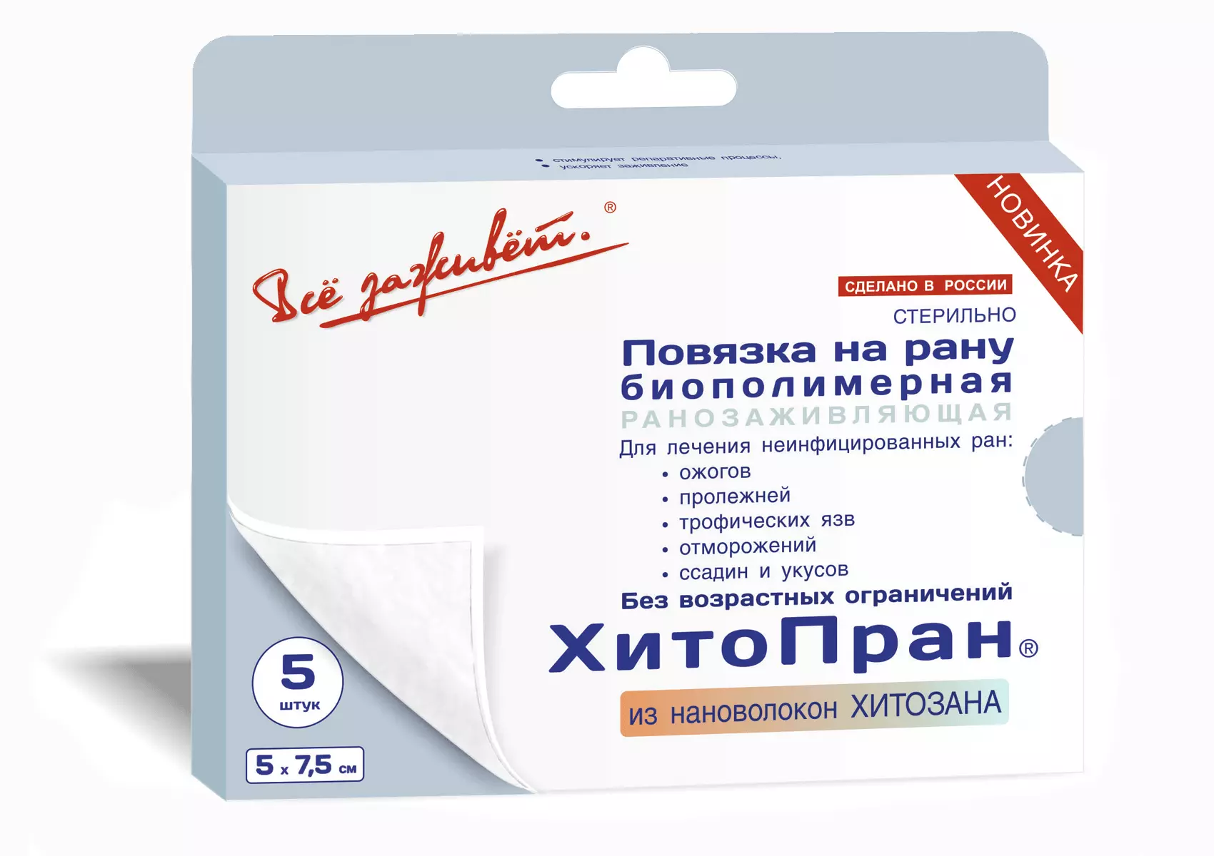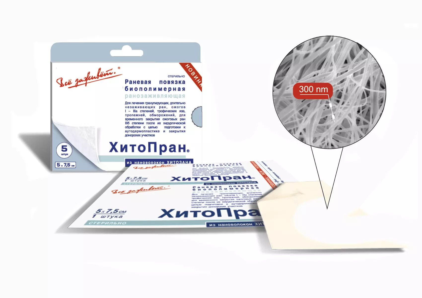 1) Хитопран® - Биополимерная ранозаживляющая повязка на основе нановолокон хитозана