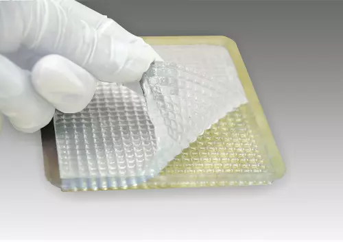 В сополимерной структуре покрытия равномерно распределено коллоидное серебро (проторгол), которое дозировано поступает из покрытия в рану, оказывая пролонгированное антибактериальное действие.