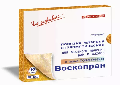 5) Воскопран® с мазью Повидон-Йод и пчелиным воском - Бактерицидная мазевая повязка.