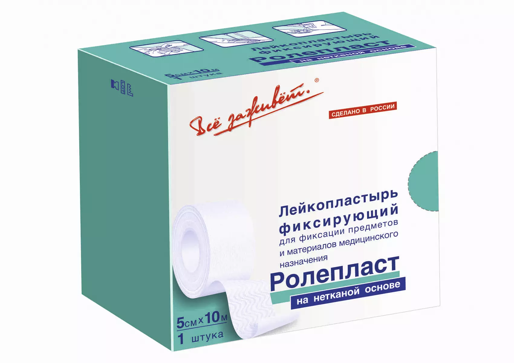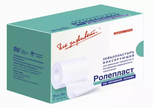 Ролепласт - фиксирующий пластырь из мягкого нетканого полотна, на которое дискретным образом нанесен клей, благодаря чему обеспечивается хороший воздухообмен. Пластырь легко моделируется на любых участках тела, надежно фиксируется, легко и безболезненно удаляется.
